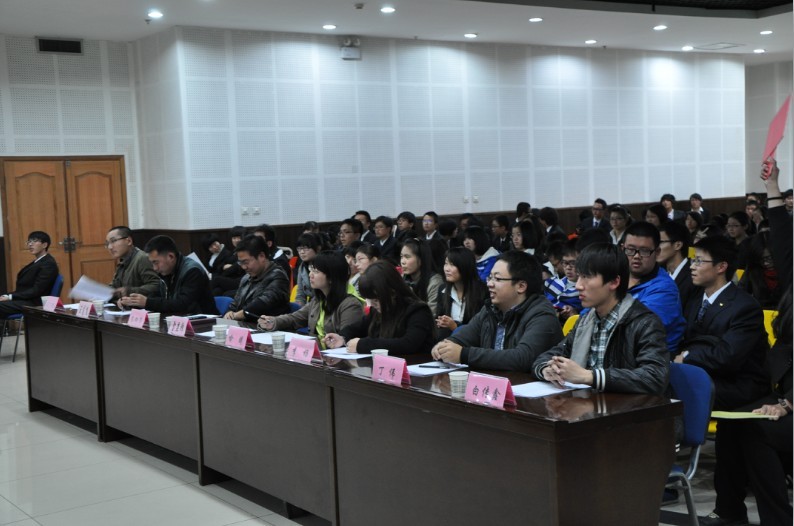 2012年11月7日19:00,长安大学经管学院第十届辩论赛“展经管风采,畅百家言论”主题辩论赛在长安大学大学生活动中心隆重拉开帷幕。比赛特邀经管学院11级辅导员陈向涛老师、10级辅导员喻曦老师、团委副书记白传鑫、公路学院11级辅导员石广腾老师、11级辅导员李扬老师。