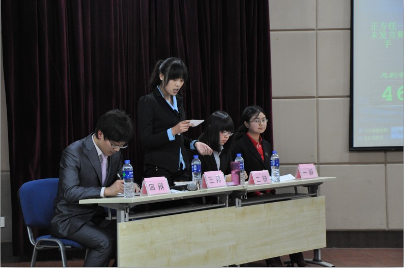 大家继续进行第二场比赛的激情由我们经管学院的两支队伍点燃。正方辩手们精辟的措辞,犀利的言辞,展现出咄咄逼人的气势,反方辩手也毫不示弱,他们利用图片的方式论证正方的观点,始终面带微笑,侃侃而谈,良好的风范,出色的口才,敏捷的思绪令场下观众为之折服,掌声不断。最终统计专业代表队凭借出色的表现获得本届辩论赛冠军,运管专业代表队惜居亚军。