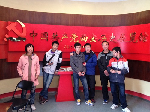 集合完毕后,在班长的带领下,我们乘车到达了西安市八路军办事处。在那里陈列着很多革命先烈的光辉历史,它们是我们党成长的见证,在那里我们感受到了他们的伟大。我们大家与先烈们合影,留念纪念,他们就像那东方升起不落的太阳,时刻为我们指引着前进的放向。我们参观完八路军办事处后徒步前去了革命公园,我们与烈士碑合影,从内心感受他的平凡与伟大。参观完两处团日活动地点,我们便乘车返回。