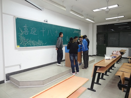 班级同学在介绍十八大精神班级同学积极参与答题获奖同学上台领奖