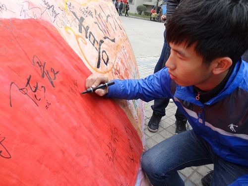 中午12点下课后,同学们积极做好准备工作,于12点15分准时向同学发放十八大宣传资料,并邀请同学在我们班的展板上签名。在整个过程中虽然遇到碰壁的情况,但同学们并没有灰心,仍然继续着宣传工作。使各位同学通过资料进一步了解到十八大的信息。
