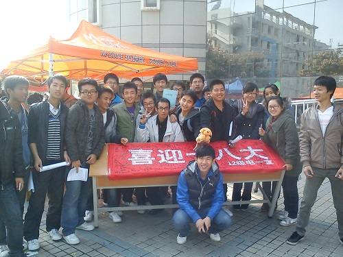 2012年月11月8日中午,正当十八大在北京召开之时,我们班举办了以“喜迎十八大“为主题的签名活动。活动在滋兰苑东门口举办,吸引了许多热情的同学前来签名。为了鼓励和感谢前来签名的同学,我们班准备了一些糖果在现场送出。