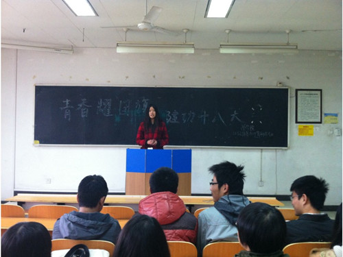 11月7日16:00整,我班在修远3301教室成功召开了以“青春耀团旗,建功十八大”为主题的班会。在班会上,首先由团支书向同学介绍了有关党的历史和十八大的基本内容。接着,各班委依次上台讲话。最后,班长对本次班会进行了总结并向同学们介绍了有关本次以志愿服务为主要内容的的团日活动的相关事宜。