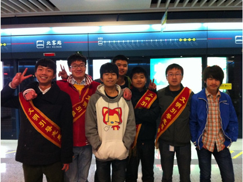 11月10日,15:00整,我班由班长带队准时出发去往凤城五路地铁站和北客站地铁站进行志愿服务团日活动,同学们自愿作为地铁志愿者,主动帮助行人排队买票,并且让老人、孕妇、军人优先购票;有礼貌,有耐心地解答群众的问题。同学们都发扬奉献精神,热情的为行人解决了一系列的问题。