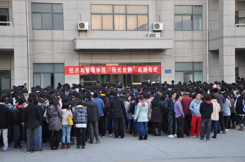 2012年11月11日下午18:00,我院本学期“阳光体育冬季长跑”起跑仪式正式开始。参加本次起跑仪式的有经管学院团委书记12级辅导员李小茹老师和经济与管理学院学院渭水校区全体在校同学。