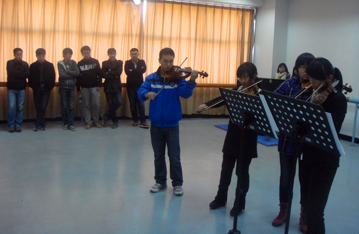 下午4:00,彩排正式开始。经过刻苦的排练,各演员第一次将所有节目集中展示。本次迎新晚会节目形式多样,内容丰富,从热情欢快的舞蹈,到深情动人的舞台剧,从充满韵律感的说唱到唯美的小提琴合奏,均展示了演员们的排练成果。同时,为庆祝十八大的胜利召开,演员们还排了一段民族舞串烧,用歌声和舞姿表达对祖国的热爱,幽默的相声表演也赢得了在场老师的高度认可和赞扬。