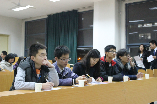 当天晚上七点,我们在明远1212教室集合,在团支书盖珍荻、班长马浴阳的带领下,我班做好了比赛的前期准备,包括欢迎人员、主持人、签到处等的到位,参赛人员的预热等。比赛于当晚七点三十分按时举办,主持人宣布活动开始,介绍到场嘉宾及比赛相关规定,接下来比赛开始。十位参赛同学们就十八大的召开,及全国人们代表大会发表自己的观点和看法,与此同时嘉宾人员进行打分,然后交由后勤人员,由后勤人员计算选手的平均分。当晚八点半所有参赛人员演讲完毕,在后勤人员进行成绩排名的同时,活动还邀请班级文艺委员随性演唱一曲。