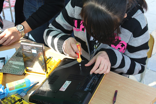 科协人员正在维修电脑