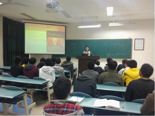 2012年11月19日下午三点四十分,理学院2010级工程力学一班主题为“学习党的十八大精神”团日活动在明远1112教室顺利召开。