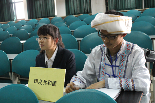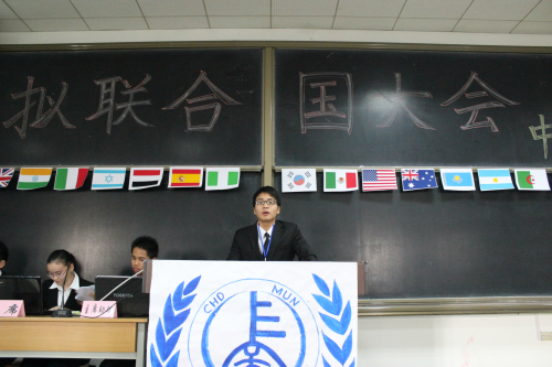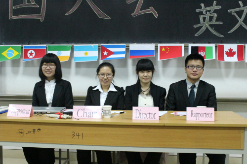 模联大会分为中文和英文两个主会场,分别于图文1203和1201召开。中文场的议题是叙利亚问题,英文场的议题是经济与环境变化。每个会场分设一名主席,两名主席助理和一名会议指导,对会议进行主持与监督。