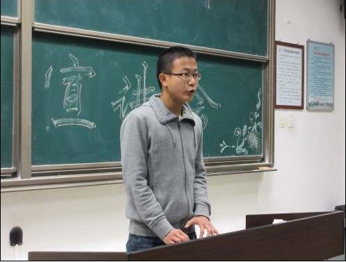 大会第一项由建工团委组织部部长李豪杰做有关十八大主题团日活动的安排及流程。他就出赛季复赛的具体安排作了介绍,并对青马班团日活动的有关活动做了简介,阐述了“校园文化共参与”的内涵及发展,从与其他高校加强交流,发掘学校优秀文化,做有关十八大社会调查等方面阐述了我们学生践行十八大精神的多种途径,鼓励我们各位干事积极融入团日活动,践行会议精神。大会第二项,由建工团委各部门同学上台就自己对十八大精神的认识和体会做阐述,同学们积极发言,就自己对“科学发展观”,“五位一体”,“全面建成小康社会”,“城乡居民人均收入2020年翻番”等谈了自己的见解,说明了自己对如何践行十八大精神的想法。
