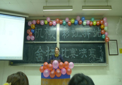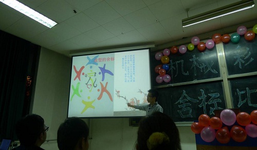 比赛开始,由 刘飞 老师发表讲话,她强调此次比赛重在提高宿舍的凝聚力,使同学们有一个和谐、健康、积极向上的生活与学习环境。进入决赛的十支队伍通过PPT演讲与才艺展示的比赛形式来向所有的评委和观众展示他们宿舍的文化与魅力。比赛过程中有“远方的朋友”参赛队激情洋溢的演讲、有“花六唯一”参赛队鼓舞人心的才艺表演、有“霸气1114”参赛队独特的舞蹈。“4316——我们的家”参赛队在现场用吉他为舍友演奏了《生日快乐》歌,还有“兄弟连”、“动感疯人”、“六意一心”、“风采1413”、“1305设计组”等参赛队独特的笑话、舞蹈。其中,“暖窝”参赛队通过制作精美的PPT和富有激情的讲解以及和舍标相呼应的歌曲《宁夏》等一系列突出主题的展示,获得了所有评委的一致好评并最终夺得第一名,赢得了属于他们自已的荣誉。