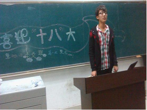 而后,大家一齐高唱国歌,党歌以及经典的红歌。一时气氛热烈,教室中充满了澎湃的歌声。接着,同学代表进行以十八大为主题的演讲——《中国,正在腾飞的东方巨龙》、《大学生关于喜迎十八大思想汇报》。演讲中提到,作为大学生的我们,深知党就在我们身边,党的爱就围绕在我们的周围。作为21世纪大学生和祖国社会主义事业的接班人,我们期待这次大会能够引领着我们的国家走向富裕和富强。