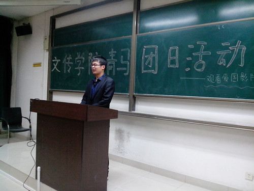 观影过后,11级戏剧影视文学班林文星同学上台做了总结发言。他指出,《建党伟业》是一部很有教育意义的历史影片。我们在通往梦想和成功的路上也会有失败和遭遇不公,但和那些革命先驱者的鲜血和生命比起来,显得渺小和不值一提,因为我们还有更多再来一次的机会,直至获得成功的喜悦。而革命先烈们有的只是前赴后继的坚定信仰,以及将这种信仰托付给同志继续传递的信任,他们甚至大多还没见到过成功的曙光,和他们比起来,我们还是幸福的。所以我们更要为了美好的明天而努力奋斗!