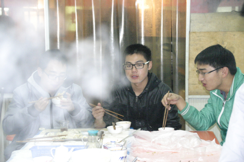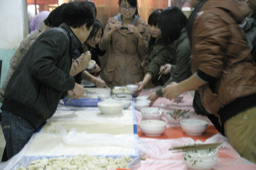 上午9:20,班上部分同学在团支书的带领下在校园就本班团日活动进行了宣传,同学挂横幅,搞宣传,气氛非常和谐。晚上6:10,班长鲁子璇和团支书王立华同学上街为同学们准备晚上要用的食品,全班同学次时以在宿舍静待出发的通知。晚上7:20,在班长鲁子璇同学的安排下聚会所需的东西以准备就绪。晚上7:40,全体同学从宿舍出发前往学校对面市场的“兰州风味拉面”店。晚上8:10,同学们开始聚集在一起铺桌布,包饺子,喜庆十八大胜利召开。同学们高涨的热情体现了此次聚餐的目的。玩上9点左右同学们吃到了自己亲手包的饺子,感受到了班级的力量,很好的达到了预期的效果。9:50,活动在融洽的气氛中结束。至此,12级智能一班“聚情谊,喜庆十八大“团日活动圆满结束。