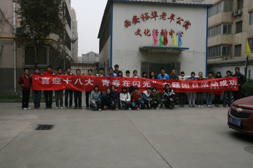 在校团委关于开展“青春耀团旗 建功十八大”主题团日活动的号召下,我院2012级自动化三班同学积极响应,11月20日上午坐车前往裕华老年公寓,当天晚上在长安大学渭水校区举行十八大交流会,圆满完成“喜迎十八大 青春在闪光”团日活动。