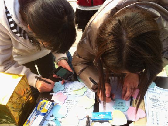 2012年11月21日至22日中午,环工学院彩虹驿站在东区树蕙园门口举行了“悠悠寸草心,感恩三春晖”为主题的感恩节活动,并取得了圆满成功。