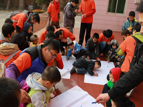 志愿者教孩子们画画