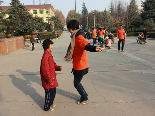 志愿者与孩子跳绳