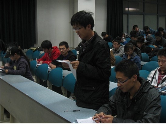 2012年11月22日,在土木八班、九班团支书的共同组织下,两个班级在明远1305关于“在人口政策方面,就开始大力发展精神产业,是否与社会现状脱节?”两问题进行了论辩。