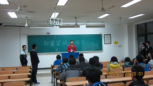 在报名现场,机械科协大一干事积极地向路过的同学发宣传单,同学们也都被这新颖的比赛而吸引了积极地向工作人员咨询相关事宜,大家你一句我一句地提问,而现场的工作人员也是既热情又有耐心地讲解着。此外本次宣传活动还设有现场抢答环节,现场最先答对者会获得复赛晋级资格。在寒冷的天气里,热烈的气氛一直持续着。