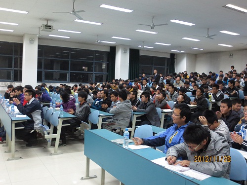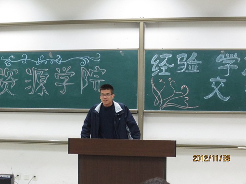会议开始,査方勇老师从大二学生上交的反思说起,强调了大一新生应该在注重学习的同时,综合提高各个方面的素质,做优秀的自己,起到感染周围人的作用,并希望大一新生创先争优,在明年的五四表彰大会上展现自己的风采。随后四位国家级奖学金获得者—10级矿加班李秀敏、11级城规班陈琳、11级资勘三班何旭鹏、11级地质二班邓晨为大一新生就学习、生活方面进行了深入浅出地讲解。建议大一同学脚踏实地,注重基础,整理知识点,从容备考;告诫大一同学要及时解决学习中所遇到的问题,提前预习,课后复习,充分利用好时间,不要追悔莫及。