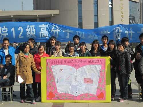 此活动中,12级高分子班的同学们以小组形式参赛,积极合作,发散思维,共提交了九幅作品,并赋予了作品不同的设计理念。在经过一系列的评选之后,共评出大赛一、二等奖,分别给予了不同程度的奖励。与此同时, 11月14日至17日,在树惠园广场对所提交的班徽作品及其设计理念进行了集中展示。