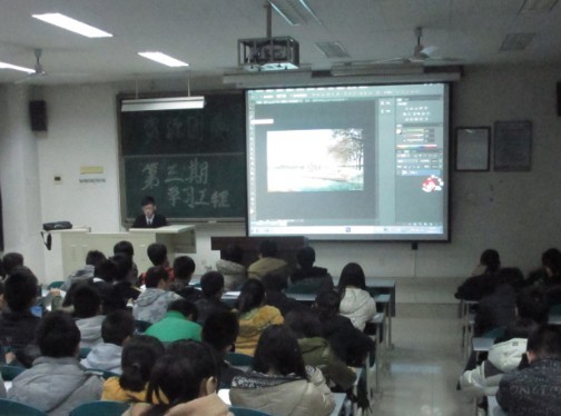 接下来是新网部对PS的讲解。首先他们对PS常用工具进行了简单介绍,同时给大家播放了几组因不懂PS而被恶搞的照片,极大地吸引了同学们的注意力,让同学们了解到了PS的重要性。