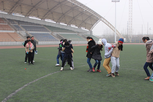 首先,由2012级文传学院辅导员乔老师致辞。趣味运动会,最重要的就是增进同学的友谊,促进同学之间相互了解,本着友谊第一比赛第二的原则,让同学们在欢声笑语中锻炼身体,希望同学们能收获友谊与欢乐。之后在体育委员的组织下,文传学院四个班级的同学被打乱分成六组,每个小组内部进行比赛,运动会的活动有袋鼠跳,两人三足,跳大绳,踢毽子,夹气球等,同学们都很努力的比赛着,场上加油声阵阵。辅导员也加入了同学们的比赛中,虽然天气寒冷,但每个人的脸上都洋溢着笑容。最后,压轴活动拔河将趣味运动会的气氛推向高潮,此时充分显示出我院新生们的凝聚力,最终以女生全胜男生告终。