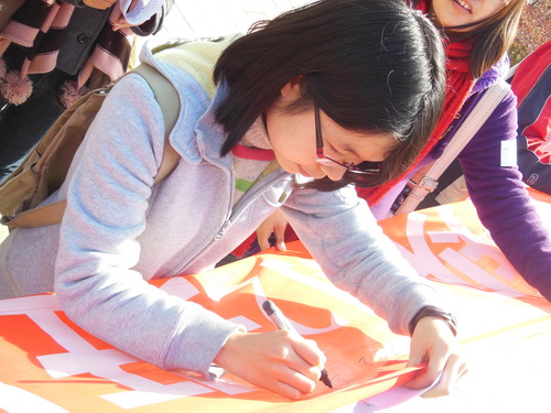 路过的同学积极响应我们的团日活动,在横幅上写下他们的祝福
