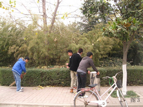 在这个临近冬天的季节里,校园的落叶往往成为清洁工阿姨最痛苦的事,她们每天辛苦的打扫几次还是满地落叶。所以我们班决定做一次有意义的劳动。下午2:00由我们班生活委员带领另一组进行校园落叶大清扫,首先从校园东区开始打扫,女生扫,男生用袋子装,大家积极配合,马路上的落叶很少,大多是草丛上,角落里的树叶较多。虽然同学们满头大汗,但仍然很高兴,因为我们每个人的心里都有一股自豪感。经过三个小时的打扫,校园大部分树叶被我们清理完了。