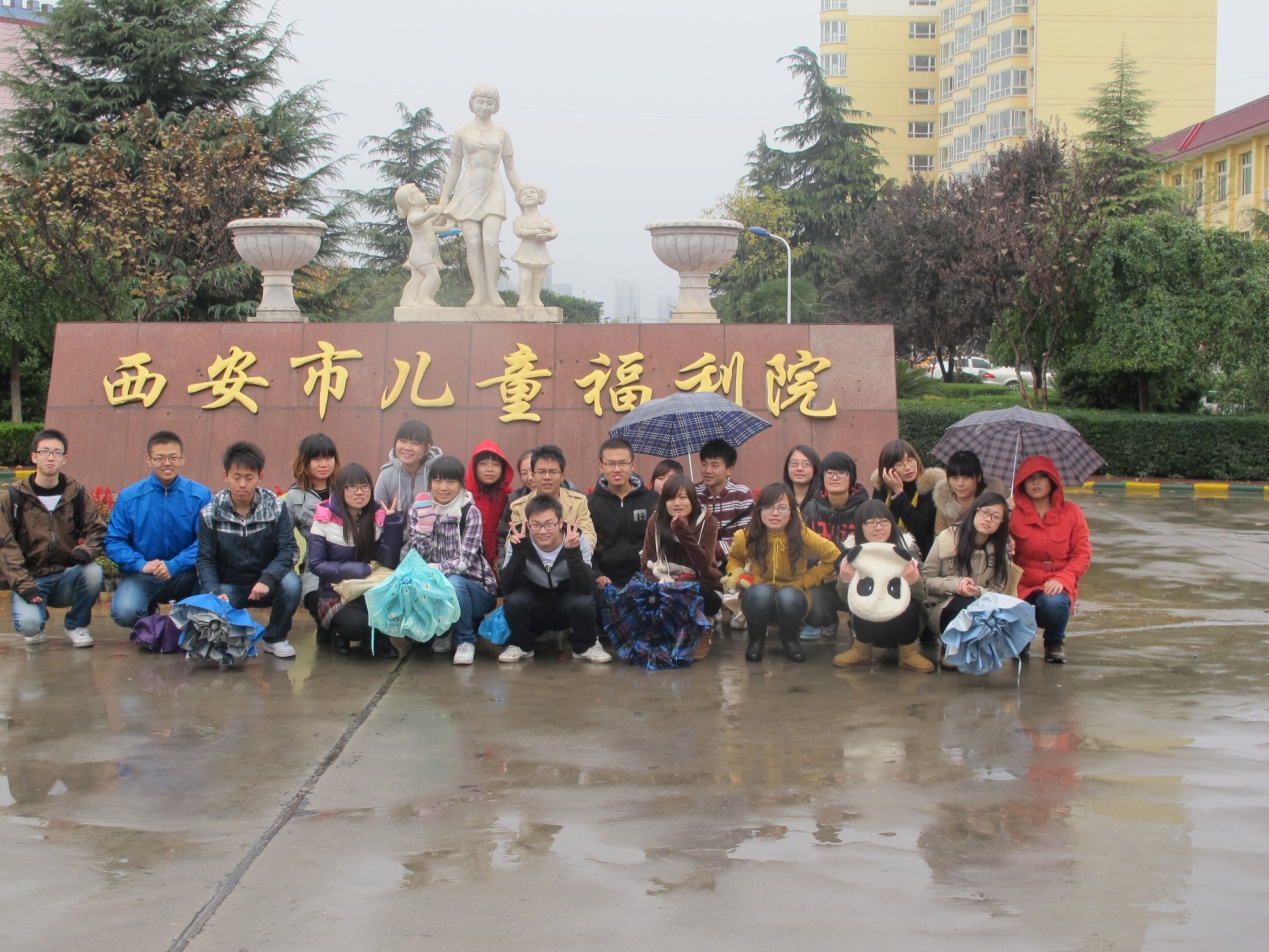 2012年11月26 日,2011级电子商务班集体赴西安市儿童福利院开展“学习十八大精神,肩负时代之责任”特色团日活动,关爱残障儿童,给他们送温暖。