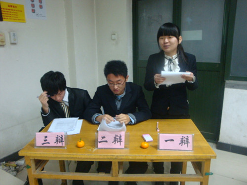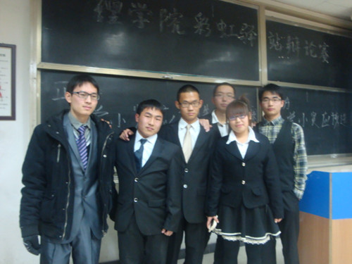 2012年12月02日晚7点,由理学院彩虹驿站举办的辩论赛决赛于我校WX1102、WX1103教室如期举行。此次比赛吸引了大批理学院学子前来观看,各班都有啦啦队为辩手们加油鼓劲。两场比赛分别由彩虹驿站部长司京占、王林琳,陈言柯、林贻帅担任评委,充分保证了结果的公平与公正。