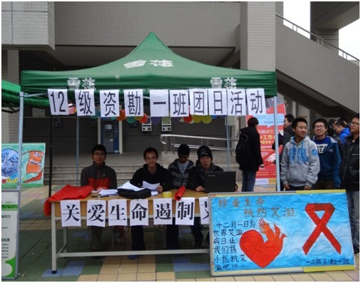 2012年11月28日,为响应长安大学关于开展“青春耀团旗,建功十八大”主题团日活动的要求,我校资源学院资源勘查工程(固矿)一班积极开展了题为“关爱生命,遏制艾滋”的团日活动,
