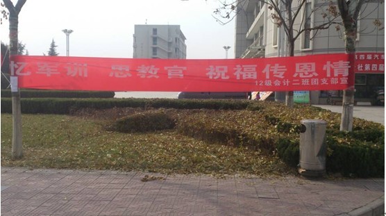 2012年11月27日——2012年12月1日,会计二班团支部为期一周的团日活动顺利举办。本次团日活动旨在通过“祝福风铃“活动和学生代表亲赴空军工程大学活动让同学们了解中国人民解放军的优良作风,通过对军人优良作风的学习,更好地提高个人素质和党性认识,同时感谢教官们军训时期的谆谆教导,践行“拥军爱民,军民一家亲”的思想,团结军民,深入学习的党的精神。