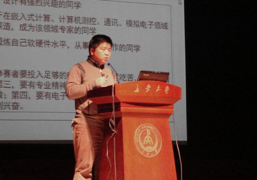 在指导讲座上,惠飞老师、荆树旭老师、张昌利老师分别就“大学生电子设计竞赛”、“大学生ACM程序设计大赛”、“大学生软件设计大赛”的相关情况,从赛事设置、参赛程序、往年参赛经验和参赛准备等多个方面向同学们进行了详细的介绍,并鼓励大家积极参赛,提高自己的专业水平。