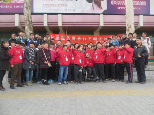 这次我们班的图日活动主题是志愿活动青春行,与12级的统计班一同举办,我们的目的地是晶洁鸟儿童福利院,在校心协的负责人的带领下,我们很快到达了目的地,福利院在一个小区的13楼,在这里生活着将近30人,大都是一些没有成年的有智力障碍的儿童,还有一些事患有自闭症的孩子,福利院的面积大致有将近四百平方米,但是因为一些桌椅和教学设施的摆放,使得这里看起来并不大,教学的环境也比较简陋。经过讨论,我们决定带领孩子们出去进行义卖活动,希望通过此举帮助孩子们筹集一些生活费,另外就是想带领孩子们多接触社会,希望他们可以在长期的训练以后可以融入社会,用自己的双手创造价值。宣传的地址选在了小寨,这里人流量比较大,进行义卖比较方便。小寨距离福利院比较远,但是我们仍决定走去,主要是天气非常好,而且孩子们在福利院活动的时间比较少,我们希望借此机会也能够让孩子们锻炼锻炼,也在路途之中多了解一下他们的生活,基本上是三个人带领一个孩子,防止他们出现意外。