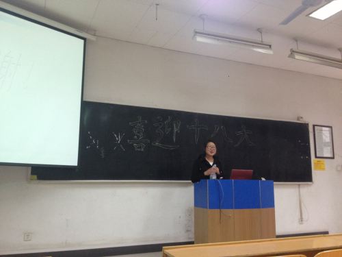 此次团日活动内容丰富。首先,同学们观看了一段由团支书制作的介绍“十八大”会议内容及选举制度的PPT。之后,同学们以成语接龙等游戏形式进行问答互动,并制订了一系列“赏罚措施”。同学们积极参与,现场气氛异常热烈。