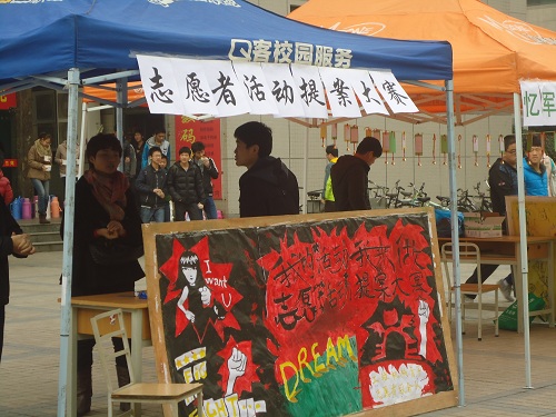 11月28号志愿者提案大赛报名正式开始.本次活动由长安大学工程机械学院青年志愿者服务队主办。此次的报名活动共持续两天,活动的报名地点设立在西区食堂门口。同时服务队还在网络平台人人、微博、贴吧等会按阶段更新活动状态。