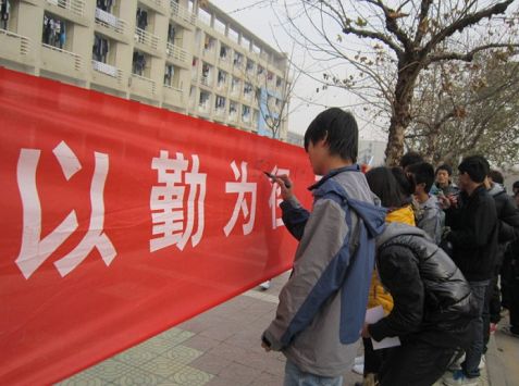 同学们在横幅上签字