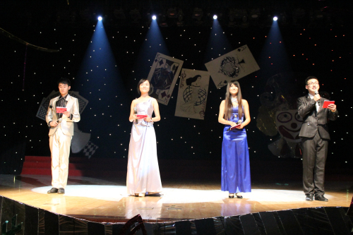 晚会在激情四射的舞蹈《江南Style》中火爆开场。演员把热情传递给在场的每一位观众,现场气氛瞬间活跃。歌曲《你把我灌醉》抒情而优雅,流露淡淡忧伤;话剧《青蛙王子》把大家从感伤带到欢笑,反串情节使节目更加出彩;rap对唱《Internation love》、动感舞蹈《不要不要》、研究生扇子舞《咏春》等充分展现了学生才华横溢的一面。院班子成员和教师代表的合唱《我的中国心&年轻的朋友来相会》将晚会推向高潮,铿锵有力的歌声表达对年轻人的祝福;学院党委书记马占平老师的两首陕北民歌使大家深刻领略到陕北的风土人情,现场掌声雷动;辅导员与学生组织主席团表演的歌曲串烧《炫我青春》,用童真的歌谣勾起大家对童年的想念与对温情的眷恋。小品《大学如此要钱》诙谐幽默的表演令全场观众捧腹大笑;魔术《梦伞魂》将大家带入一个神秘而奇幻的世界;合奏曲《卡门&加勒比海盗》融合中西式乐器,给大家留下深刻印象。晚会在歌曲《千山万水》中圆满地拉下帷幕。
