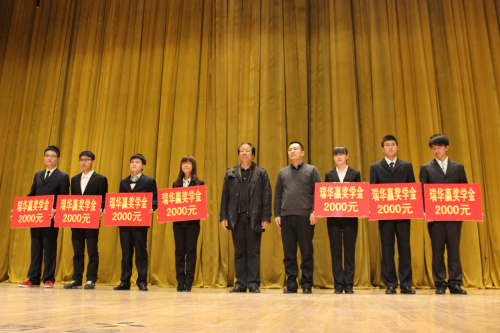 2012年12月11日晚,电控学院2012“新电感应”迎新歌舞晚会暨瑞华赢奖学金颁奖仪式在渭水校区朝晖大学生活动中心举行。长安大学副校长谢军占、北京瑞华赢科技发展有限公司总裁吕西林出席了颁奖仪式并与长安大学学工部、武装部、渭水校区管委会办公室等单位负责人及电控学院全体院领导、各系部室主任、班主任、学院渭水校区全体学生一起观看了文艺表演。