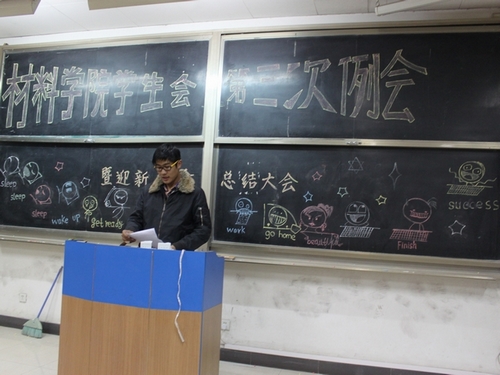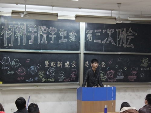 为了对本届“材梦起航”迎新晚会及本学期工作做一个全面的总结,12月12日晚7点,我院学生会全体成员于修远教学区1102教室举办了第三次例会暨迎新晚会总结大会。出席本次会议的有我院团委副书记刘桐,学生会主席商敬东,副主席薛威。本次会议由秘书处干事余金丽主持。