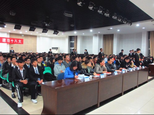 12月17日晚7:00,建工学院“学习贯彻十八大精神”主题团日交流评选大会于渭水校区朝晖大学生活动中心三楼多功能厅成功举行。出席此次活动的有建工学院党委副书记李险峰老师,团委书记王树莹老师,副书记肖晶晶老师、李阳老师,建筑学院团委书记刘鹏老师,2010级辅导员殷佳老师,2011级辅导员陈丽婷老师,五大组织主席以及各参赛班级的同学。