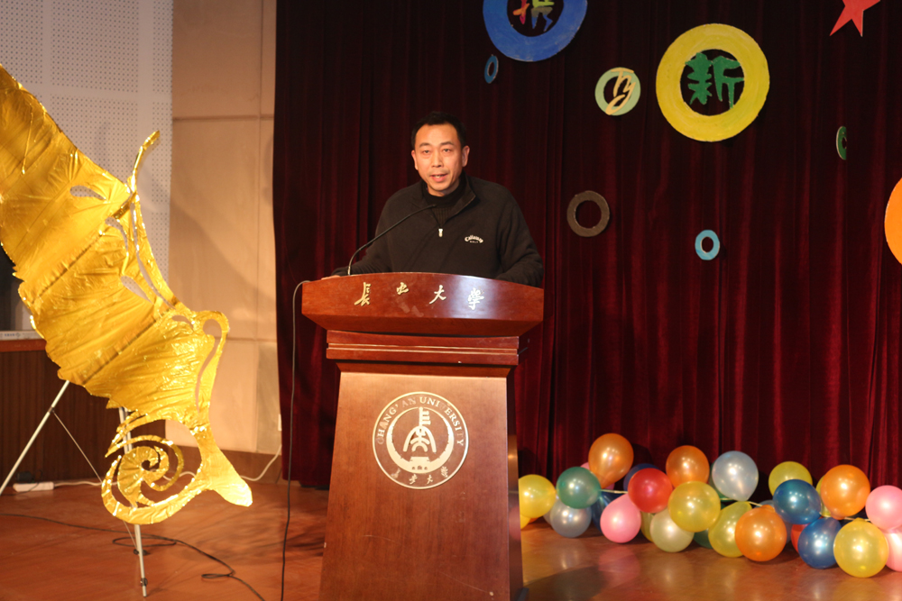 长安大学体育系2012年“携新展翅·体艺双辉”迎新联欢晚会于12月14日晚 在长安大学渭水校区活动中心三楼多功能厅隆重举行。长安大学学工部副部长冯娟、长安大学经管学院党委副书记吴喜梅、长安大学渭水校区办行政科科长栾义峰等受邀莅临晚会现场,体育系党总支书记张保兴、主任王波、党总支副书记陈沛、副主任罗峰、李新以及体育系办公室、各教研室的老师、各校级组织的主要负责人等和体育系77名同学参加晚会。