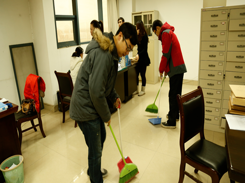 同学们在办公室打扫卫生
