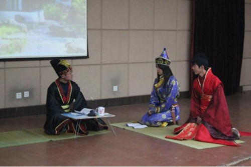 “我班同学在关峰老师的指导下,进行了两个星期的排练,并为表演进行了精心的策划与彩排,申请场地,租赁服装,认真排练……话剧的每一幕都是我们努力的成果。”戏文班班长陈超说到。