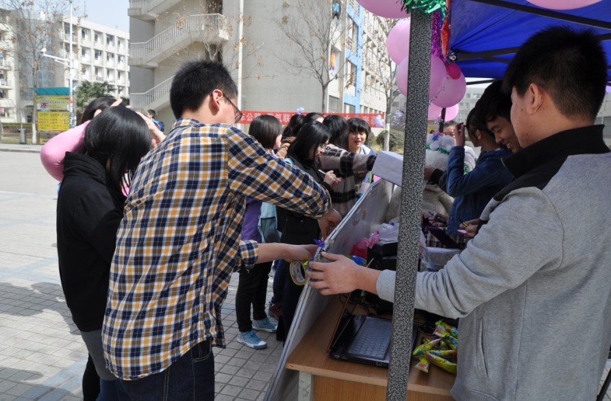 为了丰富我校大学生的校园文化生活,增强学生之间的交流沟通,经管学院学生会于三月七日在渭水校区西区滋兰苑广场举办女生节活动。