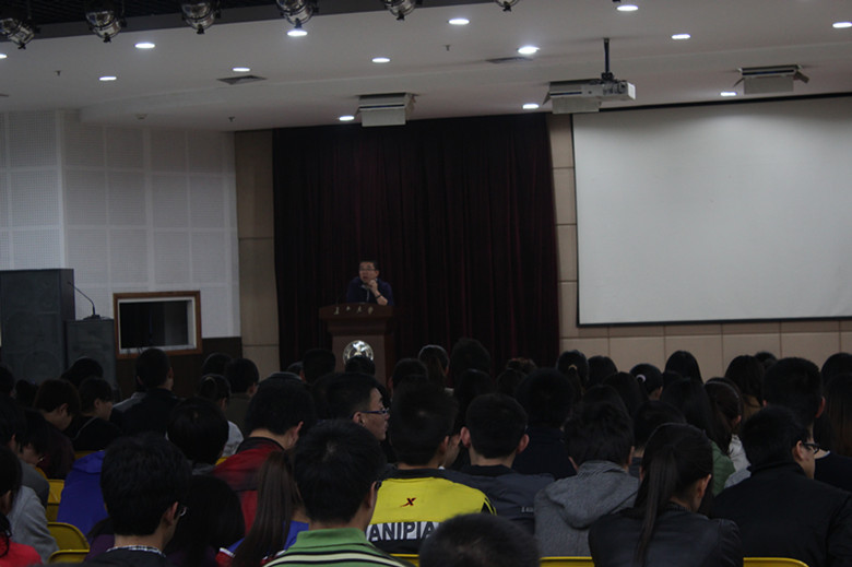 讲座中李东彪老师还给同学们说了很多人生哲理,他告诫同学们对工作的态度应该端正,工作无贵贱之分,只有个人能力之分。他还举例子说明人生有很多种可能,每种人生都能精彩万分,关键在于自己。李东彪老师诙谐精彩的演讲让人印象深刻,相信在场的10级同学们也一定会因此而受益,对于未来的自己做出正确的规划。