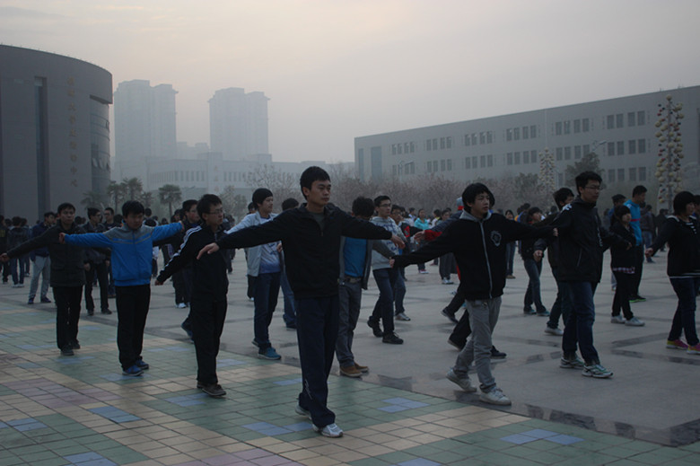 为认真响应落实国家“阳光体育运动”的号召,进一步增强同学们的体质,提高广播体操的动作质量,展现当代学生的青春风采,在长安大学将举行大学生第九套广播体操大赛中展现环工学院风采,我院同学正在积极的筹备广播体操的训练工作。